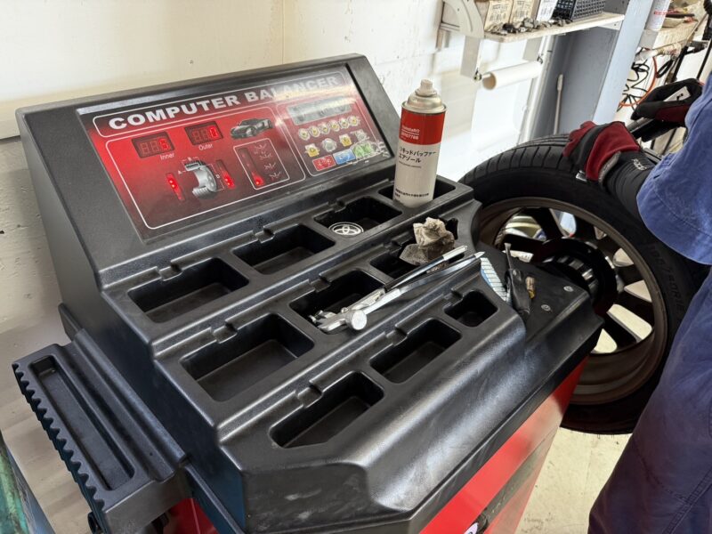 タイヤを取り付けたら、ホイールバランスを取ります。