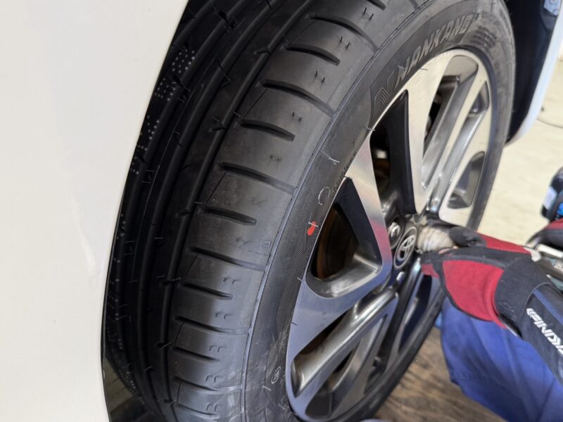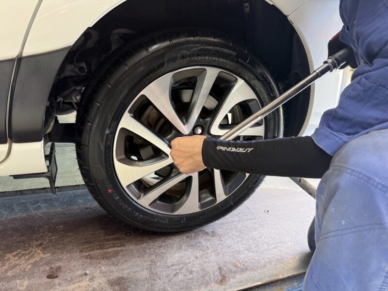 タイヤバランスを取ったら、車両にタイヤを取り付けます。