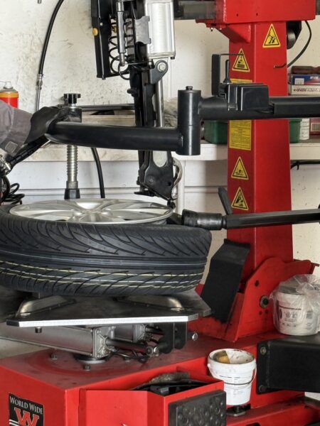 タイヤチェンジャーでタイヤ組み換え、ホイールバランスを取ります!