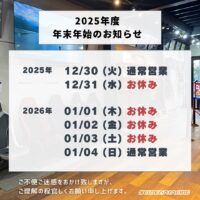 平素よりお世話になっております。今年も残り僅かとなりました。2025年も多くのお客様に足を運んでいた...